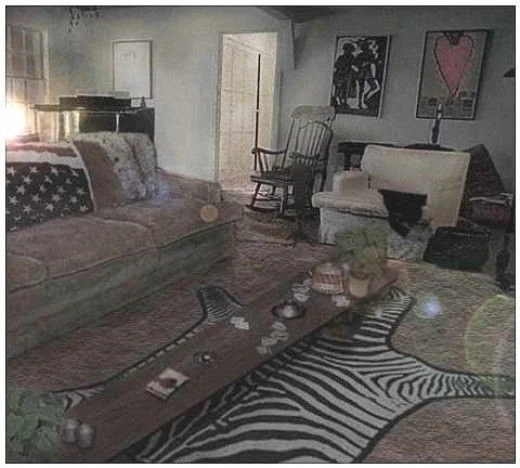 Комната, где всё случилось, за некоторое время до случившегося. Шерон найдут на диване, накрытую этим американским флагом.