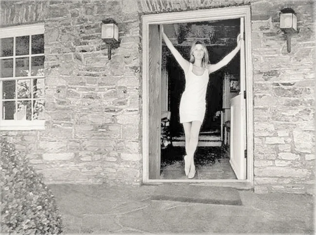 Шерон Тейт в дверях дома на Сиело-Драйв. Эту дверь спустя много лет за большие деньги купит Трент Резнор из Nine Ich Nails