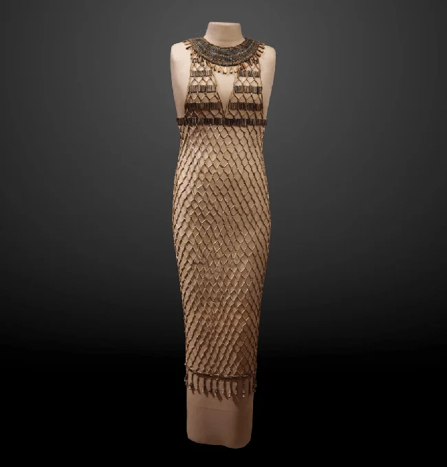 8. Платье из египетского фаянса, набранное из бусин, ритуальный или погребальный наряд. Древнее Царство, IV династия, период правления фараона Хуфу (Хеопса), ок. 2551–2528 гг. до н.э.