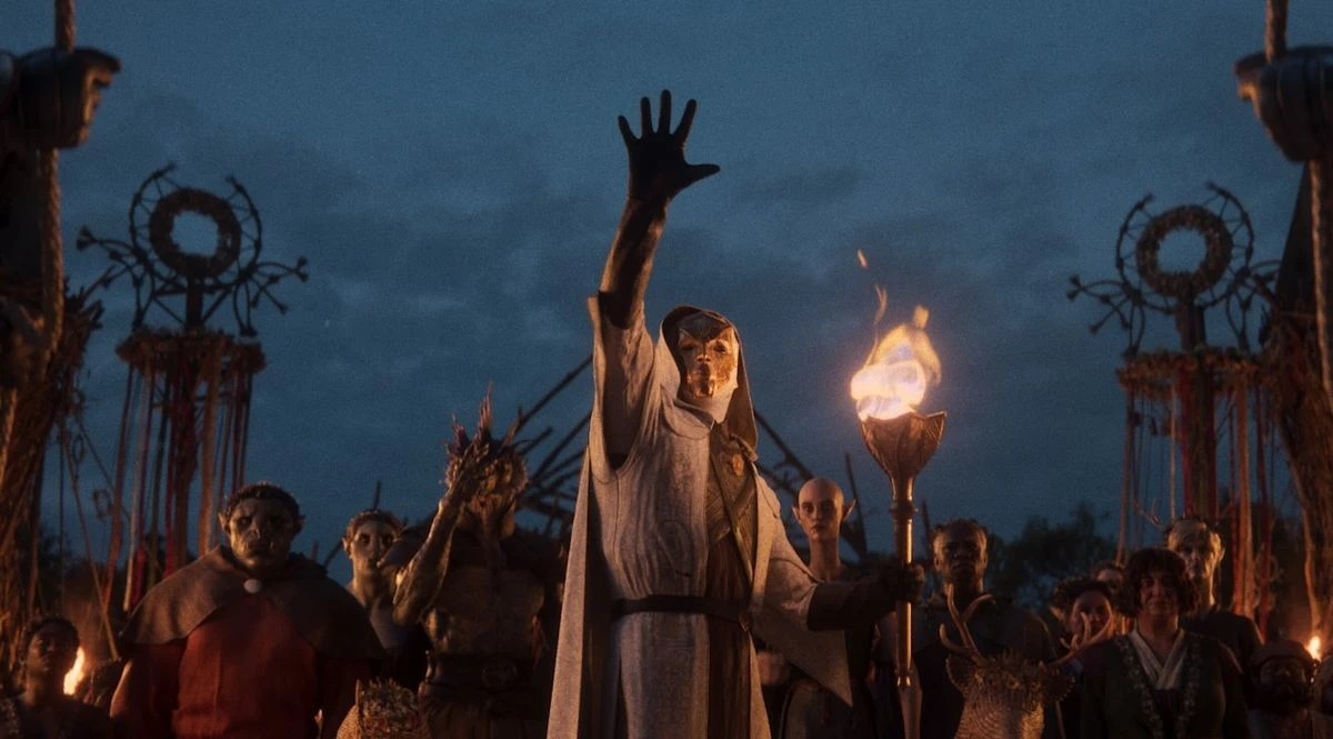 В трейлере жители города собираются в одном месте, чтобы посмотреть на жертвоприношение.