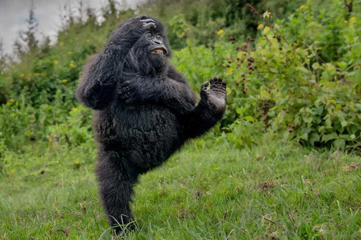 Коэн рассказал, что провел несколько дней в горах Вирунга, где его группа наблюдала за семейной группой горилл, известной как Амахоро. Пока взрослые спокойно собирали пищу, детеныши играли неподалеку, и один малыш особенно выделялся – он кувыркался, высоко закидывал ноги и вел себя как настоящий акробат, что и позволило поймать идеальный комичный кадр.