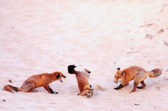 «Выход на танцпол — лисы соревнуются в брейк-дансе», автор Под Рустемайер, фото сделано в Германии