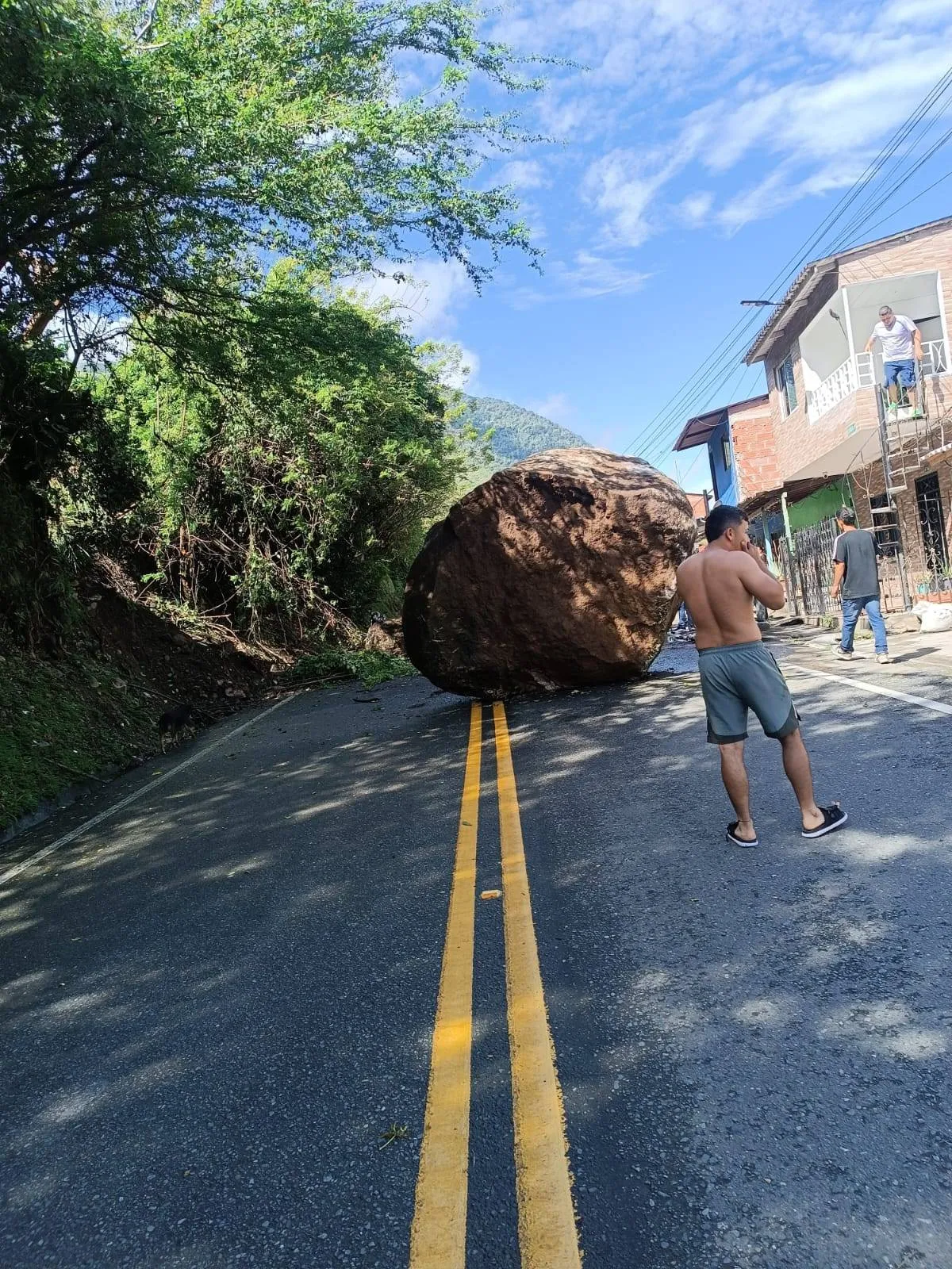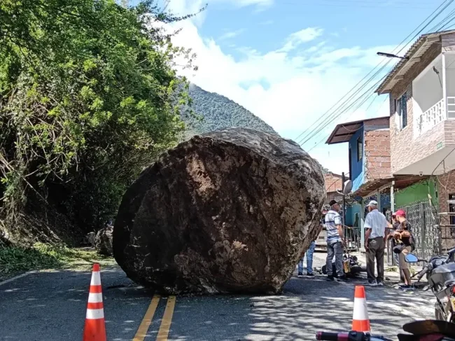 В Дабейбе, регионе Антиокия, мотоциклисты и несколько прохожих в последний момент уклонились от огромных камней, отколовшихся от склона. На записях камер безопасности видно, как люди реагируют на громкий шум и быстро убегают, а через секунды валуны падают на дорогу.
