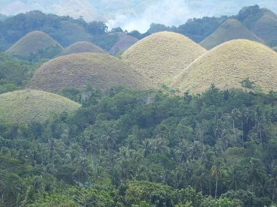Здесь их около 1260 штук, разбросанных по территории в 50 квадратных километров. Их высота — от 30 до 50 метров, и они удивительно симметричны. Холмы состоят из покрытого травой известняка и свой фирменный шоколадный оттенок приобретают, когда зелень выгорает под палящим солнцем.