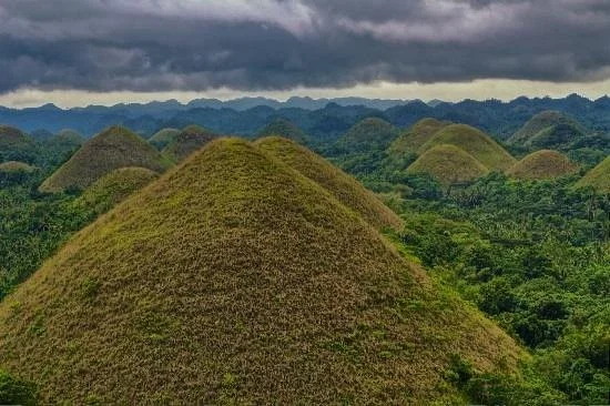 Представьте, что вы летите над филиппинским островом Бохоль в сухой сезон. Под вами раскинется сюрреалистичный пейзаж: ровные ряды идеальных конических холмов, укутанных в выжженную солнцем траву и напоминающих гигантские шоколадные трюфеля.