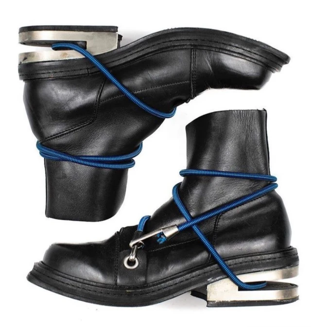 Dirk Bikkembergs bungee boot - стильные ботинки от одного из участников Антверпенской шестерки. Впервые они были представлены в 1996 году в коллекции осень/зима и были вдохновлены ретро-альпинистским снаряжением. Главной особенностью являются эластичная веревка-шнурок и металлический каблук. На данный момент стоимость пары начинается с 1000 долларов.
