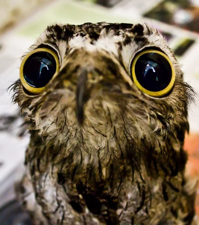 Вот как выглядит сова, промокшая во время сильнейшего дождя: её перья отлично задерживают воду, становятся тяжелыми, и из-за этого птице становится трудно подниматься в воздух - она быстро устаёт.