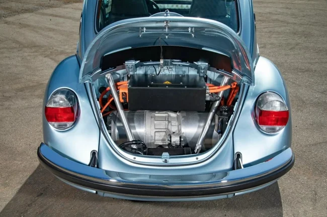 Доставленному на историческую родину «Жуку» имплантировали в задний моторный отсек электродвигатель от Tesla Model S. Причём не стандартный, а адаптированный под повышенное напряжение от 17 аккумуляторных модулей на 48 кВт⋅ч от Porsche Taycan. Достигнутый таким образом 12-кратный прирост мощности с заводских чуть более 50 до высоковольтных 647 л. с. обеспечил разгон до сотни за мимолётные 2.8 секунды — на целых 0.5 секунды быстрее, чем это требуется, скажем, от Porsche 911 GT3.