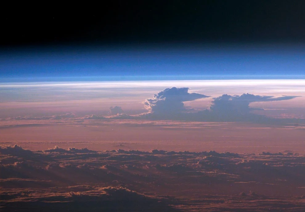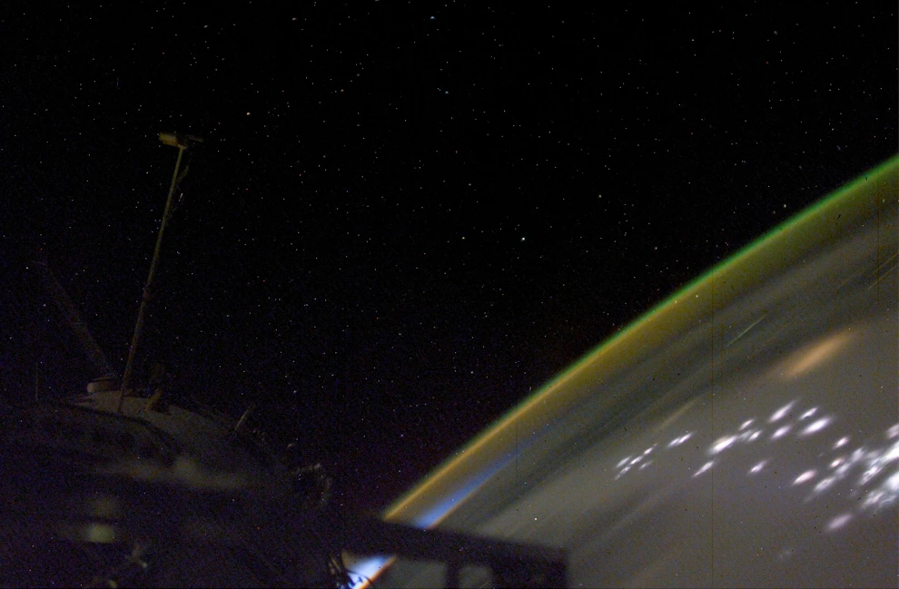 Вспышки молний, огни городов, закат, южное полярное сияние, атмосферные свечения и звезды над Аргентиной -4/23/2003 (Image courtesy of the Image Science & Analysis Laboratory, NASA Johnson Space Center)