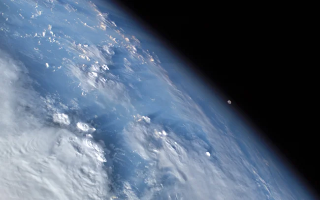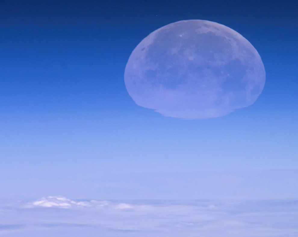 Луна садится над Кубой. Из-за атмосферных искажений она кажется плоской, 2/24/2005 (Image courtesy of the Image Science & Analysis Laboratory, NASA Johnson Space Center)