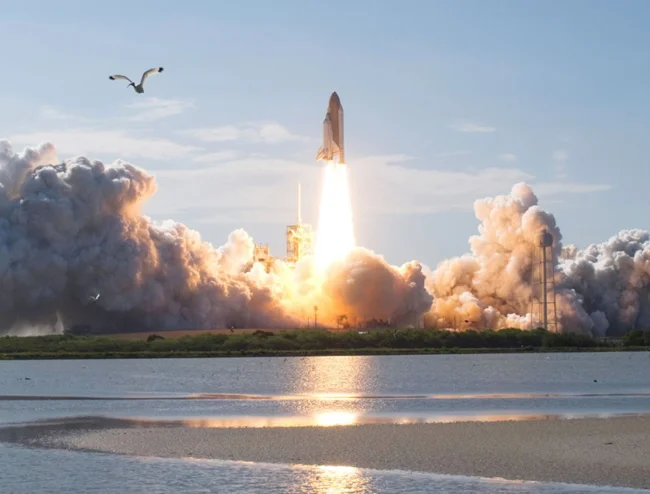 Шаттл «Discovery» взлетает со стартовой площадки 39-A в 5:02 вечера. (Photo courtesy of NASA/Johnson Space Center)
