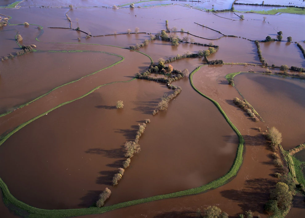 Затопленные поля в английском графстве Чешир, Великобритания. Google Map (© Jason Hawkes)