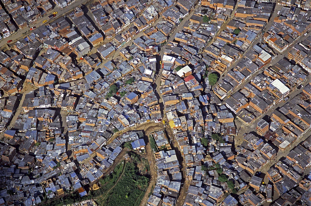 Колумбийский город Медельин, вид на городские трущобы с высоты птичьего полета. Google Map (© Jason Hawkes)