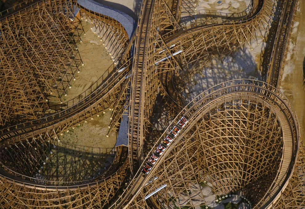 Американские горки «Рокот», город Сикс Флэгз Америка, штат Мэриленд. Google Map (© Jason Hawkes)