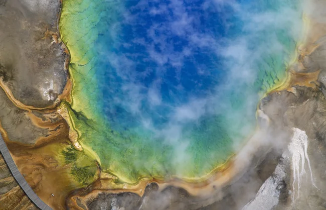 Большой Призматический источник (Grand Prismatic Spring) в национальном парке Йеллоустоун, крупнейший горячий источник в Соединенных Штатах. Google Map (© Jason Hawkes)