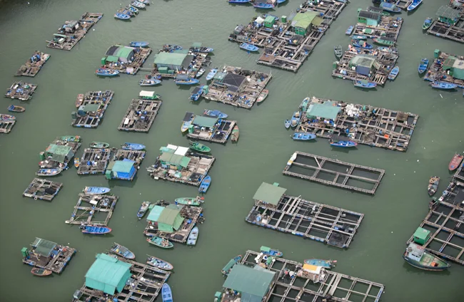 Рыбные фермы близ города Ван Ма, Гонконг, Китай. Google Map (© Jason Hawkes)