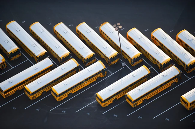 Желтые школьные автобусы, штат Невада. США. Google Map (© Jason Hawkes)