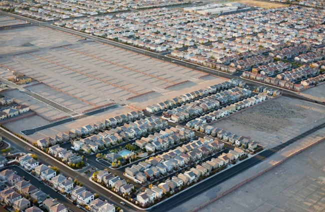 Новостройки и участки под строительство нового жилья на окраине Лас-Вегаса, штат Невада, США. Google Map (© Jason Hawkes)