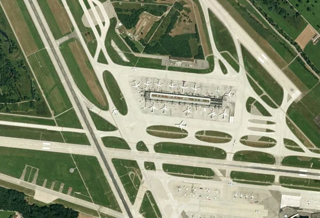 Аэропорт Цюрих, обслуживает более 50 международных авиакомпаний.