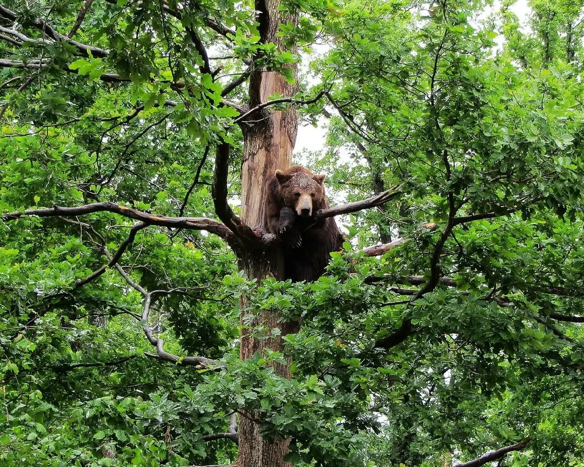 Молодые медведи пугливы и не ввязываются в драки первыми. Чаще всего от опасностей они спасаются также, как и в детстве — на дереве.