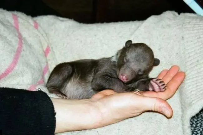 Всё сложилось удачно? Поздравляем, это самое безопасное время для медвежонка. От вас на данном этапе ничего не зависит. Медвежата рождаются размером с крупного щенка: слепые, глухие и абсолютно беспомощные. Вся их надежда только на самку и её жировые запасы.
