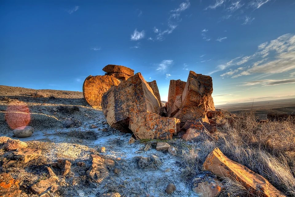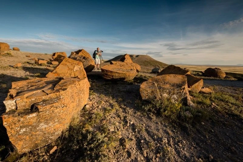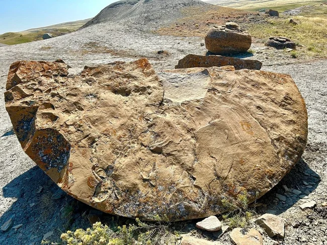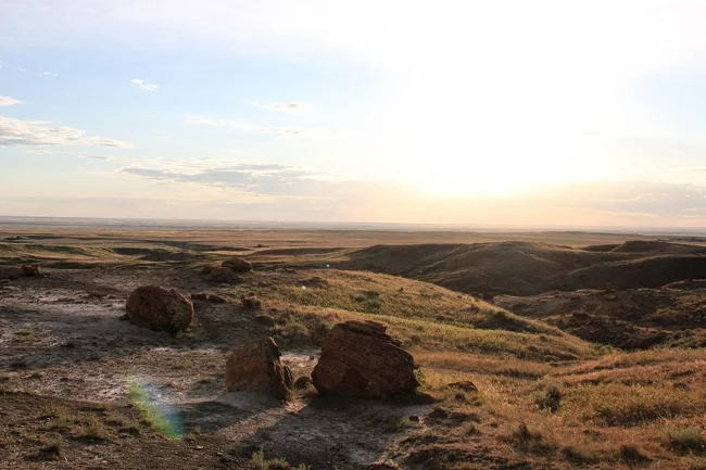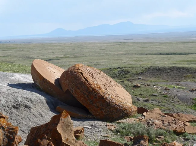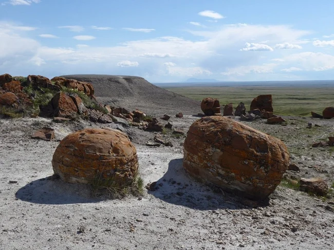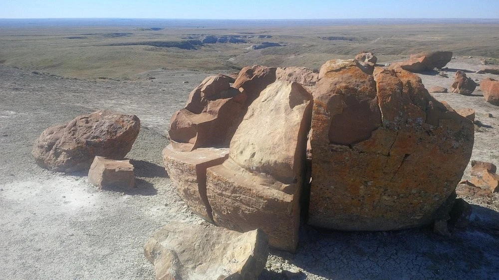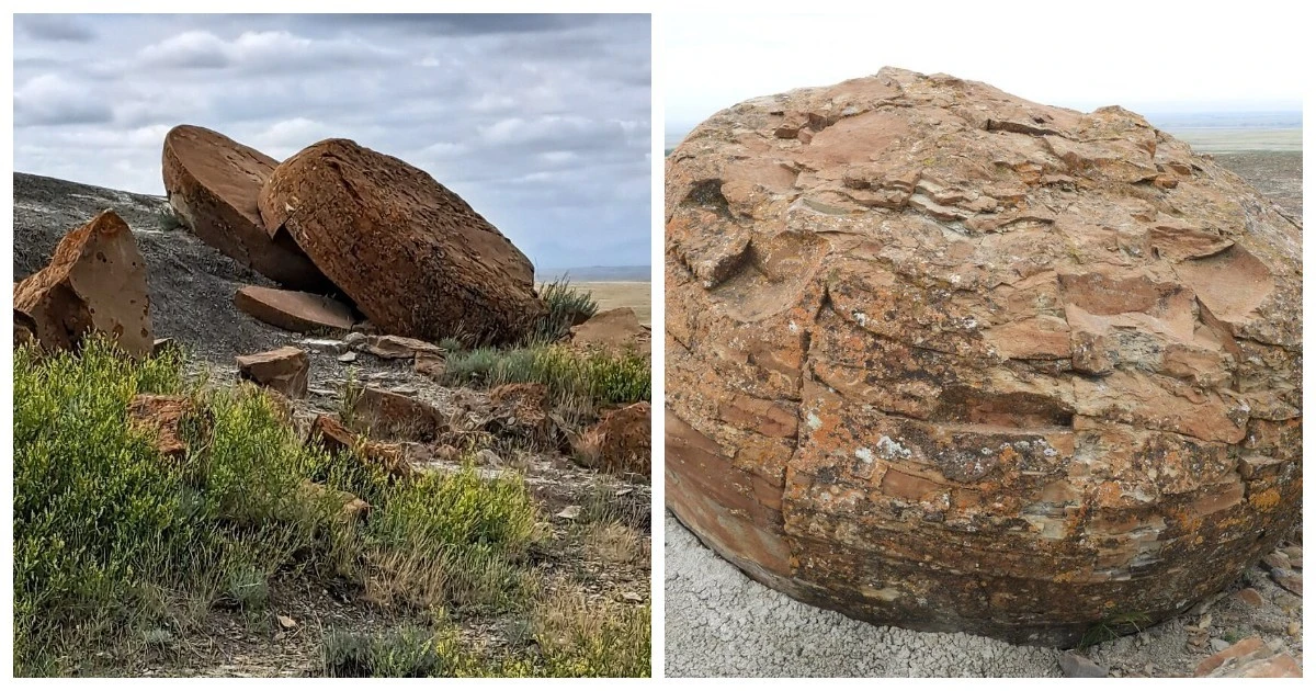 При виде гигантских сфер огненного оттенка, усеивающих степь, возникает ощущение, будто ты перенёсся на Марс. Некоторые валуны превышают в диаметре два с половиной метра, что делает их одними из крупнейших песчаниковых конкреций в мире.