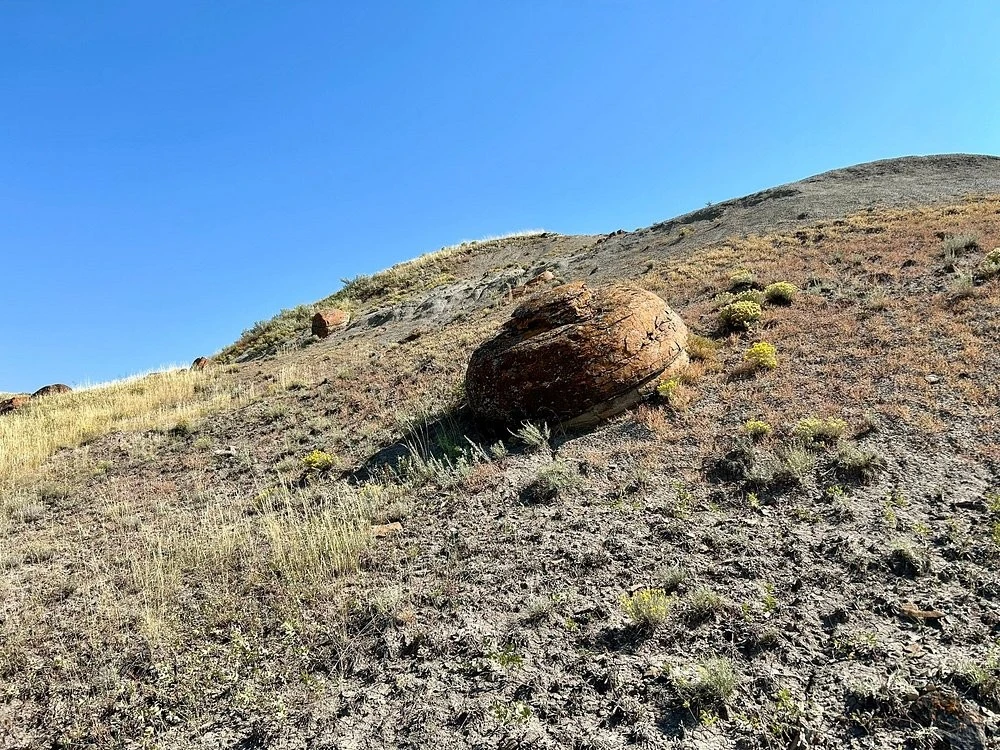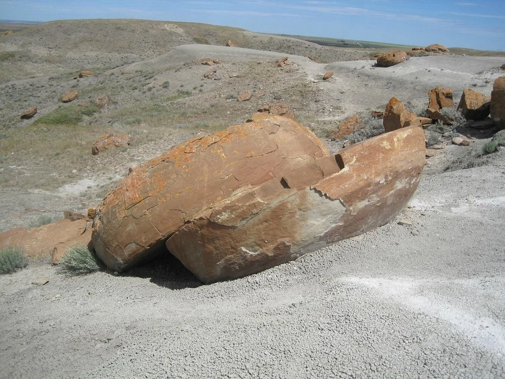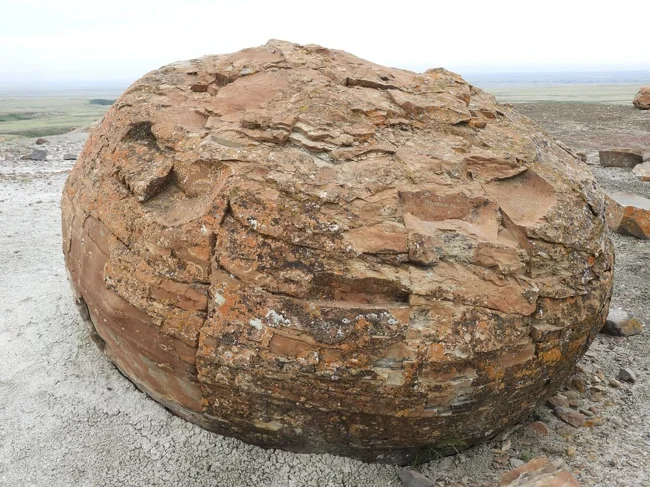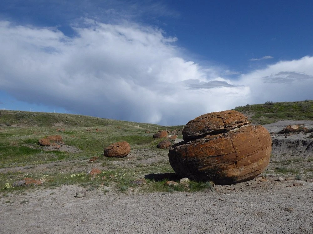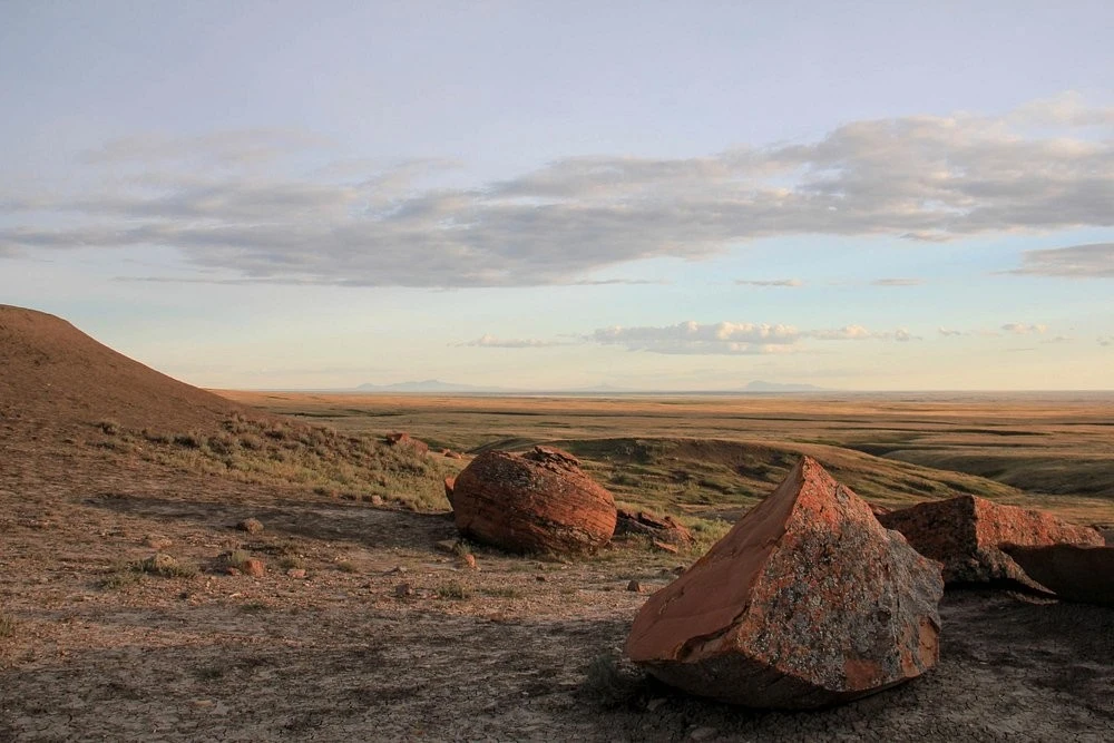 Среди первозданных холмов южной Альберты разбросаны огромные круглые красные камни правильной формы.