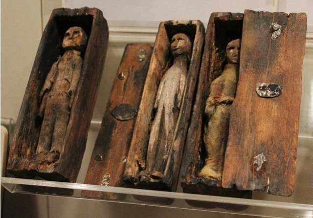 В Национальном музее Шотландии в Эдинбурге хранится набор из восьми миниатюрных деревянных гробов, отделанных железом. В каждом покоится маленькая фигурка с нарисованным лицом, одетая в аккуратно сшитую и приклеенную одежду.