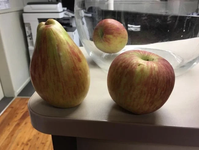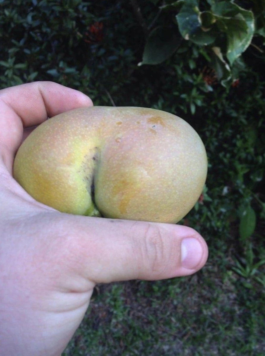 А ещё на эту грушу, чья кожура похожа на яблоко
