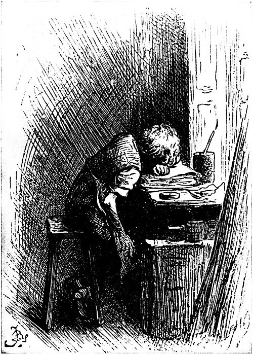 Художественное изображение Чарльза Диккенса, вынужденного работать на фабрике после того, как его отца отправили в Маршалси
