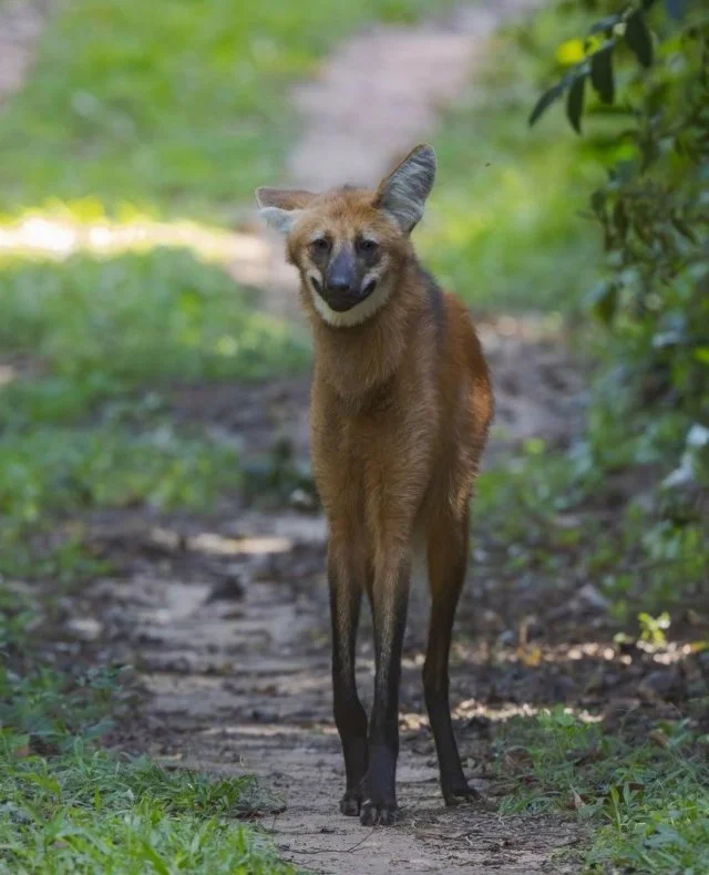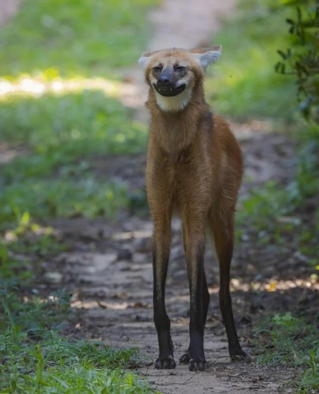 Фотограф заснял самого милого и безобидного на вид волка — это гривистый волк или гуара. Выглядит он как лиса на ходулях, половину его рациона составляют фрукты, он не умеет выть, а его длинные ноги — признак адаптации к жизни в высокой траве саванн.