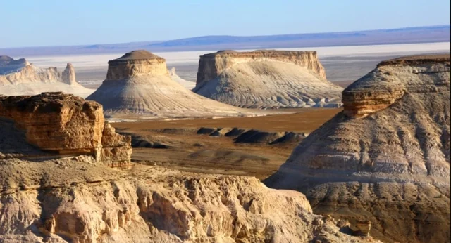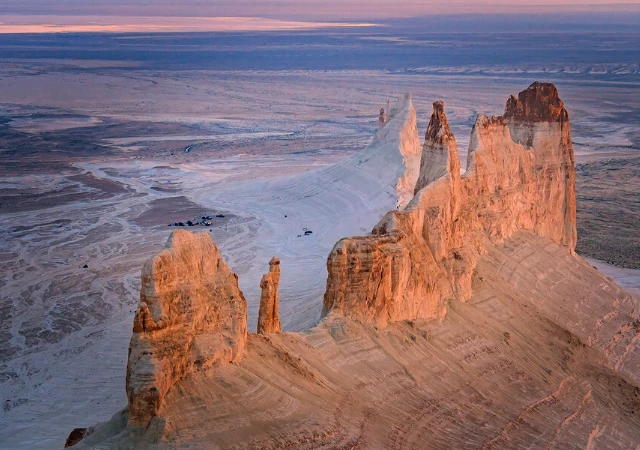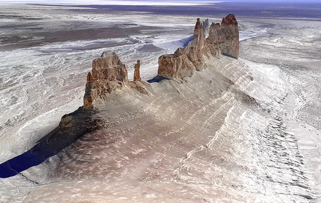 Босжира в Казахстане раньше была погружена под древний Тетисов Океан. На протяжении миллионов лет эрозия, тектонические движения и морские отложения превратили это место в пейзаж, который кажется одним из других планет