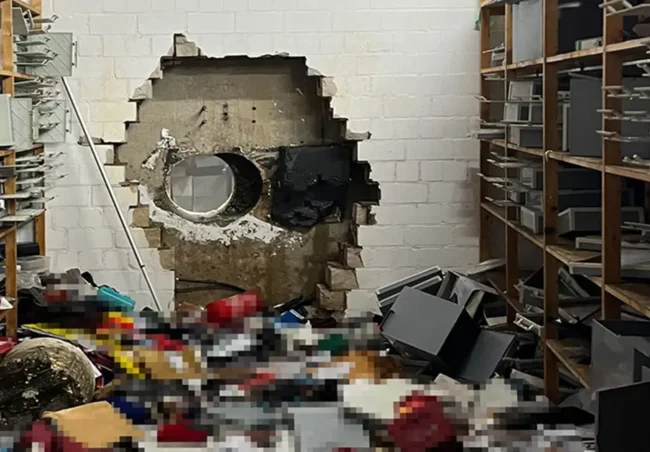 Преступники проникли в соседний подземный паркинг, принесли профессиональную буровую установку и за несколько дней просверлили огромную дыру в бетонной стене толщиной около 40 сантиметров прямо в хранилище. Они взломали около 3000 из 3250 сейфов. Вынесли все что к полу не приколочено: наличные, золото, ювелирные изделия, семейные ценности.
