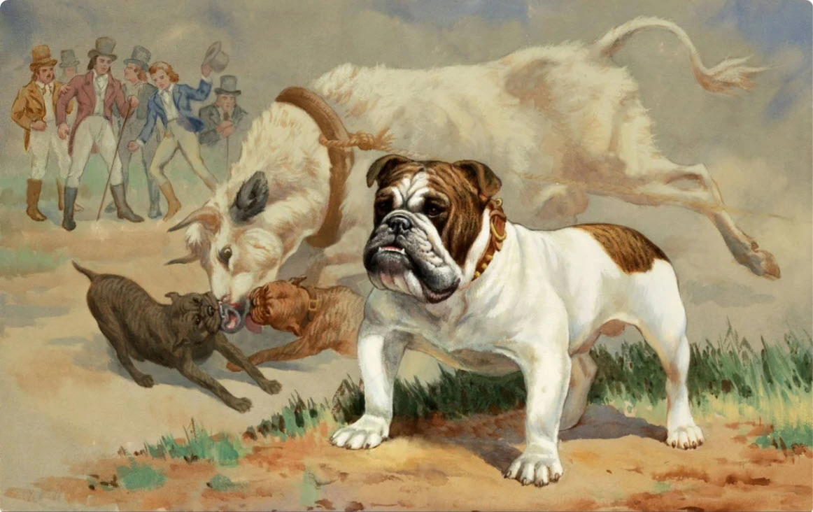 Само слово «бульдог» переводится как «бычья собака». В 18-19 веках людей забавляли жестокие игры, в которых пёс укладывал быка, вцепившись ему в морду.