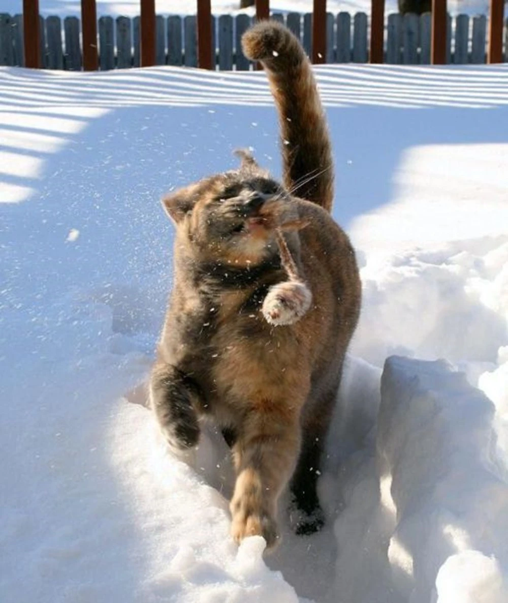 Стишок-нескладушка, конечно, так себе, но зато он очень точно отражает зимнюю атмосферу приключений, в которую с приходом зимы попадают братья наши меньшие. Снег, мороз, иней, сугробы нередко играют с четвероногими друзьями злую шутку, превращая их в мини-копии снеговиков или странных чудищ. Но позитивный настрой пушистики при этом не теряют, а заодно радуют и нас смешными в своём трогательном негодовании мордашками и нелепыми позами.
