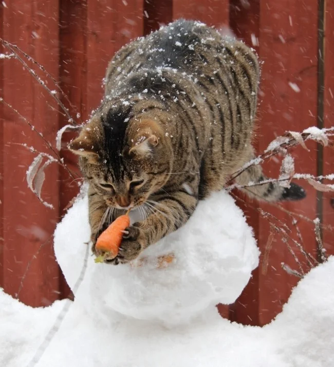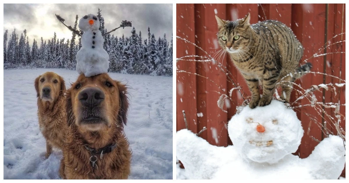 20+ очаровательных питомцев, которые проходят испытание сугробами и снеговиками (21 фото)