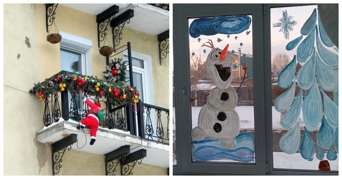 30 примеров новогодних окон и балконов, ставших произведениями искусства (31 фото)