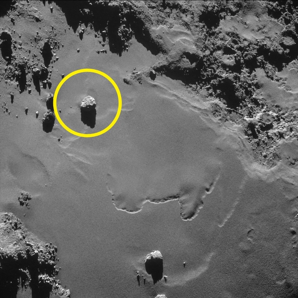 На заключительном снимке продемонстрирована усеянная валунами область "шеи" кометы — соединение между двумя долями. Меньшая доля расположена слева, большая — справа. Именно шея является источником наибольшей активности кометы Чурюмова — Герасименко.