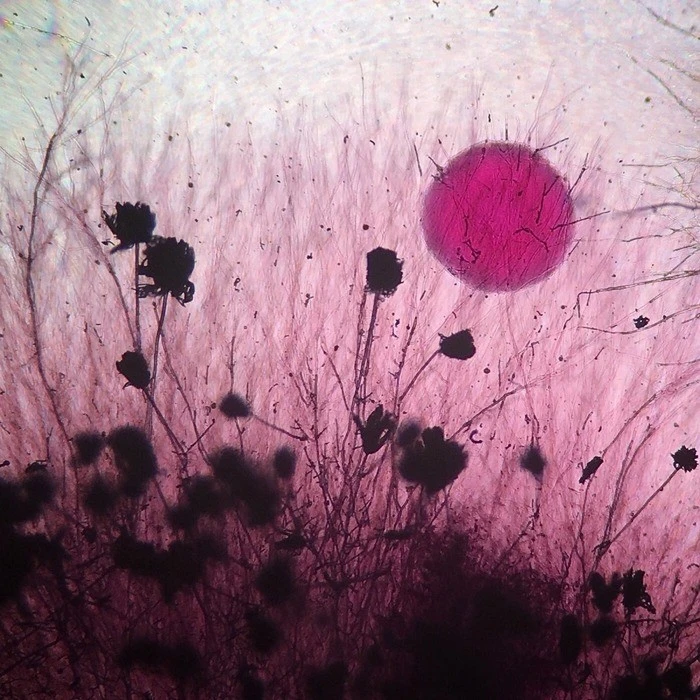 Это колония грибов в почве. Если бы я увидел это изображение вне контекста, то решил бы, что передо мной работа какого-нибудь пейзажиста из Японии, который запечатлел заходящее Солнце над цветочным полем.