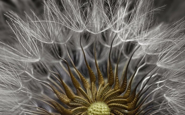Изящная структура соцветия крестовника, заполненная крошечными семенами. У каждого семечка есть пушистый хохолок, который в будущем поможет ему отправиться в воздушное путешествие и, если повезет, попасть в благоприятные условия для прорастания и воспроизводства собственного потомства.