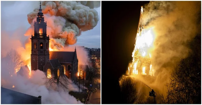 Амстердамцы решили начать год ярко в прямом смысле слова. В ночь на 1 января 2026 года неоготическая Vondelkerk, жемчужина 1872–1880 годов от архитектора Пьера Кейперса (того самого, что подарил миру Rijksmuseum), внезапно превратилась в гигантский новогодний костёр.