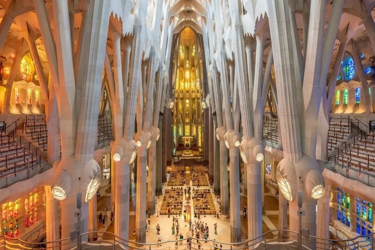 Величественная базилика в Барселоне, строившаяся с 1882 года, внутри представляет собой каменный лес. По замыслу Антонио Гауди, здесь нет ни одного прямого угла.