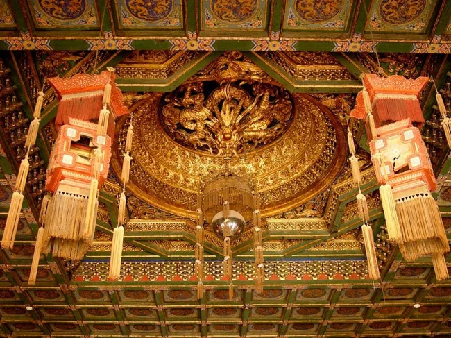 Внутренние залы, такие как Тронный зал Высшей Гармонии, поражают масштабом, лаковой отделкой и золотом, утверждая абсолютную власть Сына Неба.