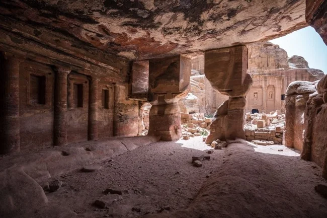 Розовый город, высеченный в скалах набатеями, скрывает не только знаменитую Сокровищницу. Внутри монастыря Эд-Дейр, колоссального здания, вырубленного в горе, царит прохлада и полумрак.