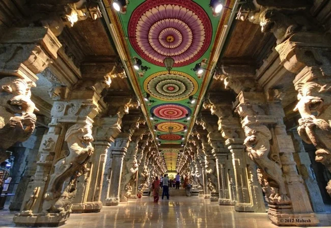 Под сенью четырнадцати башен-гопурам, покрытых тысячами ярких скульптур, бурлит жизнь древнего храмового города Мадурай. Внутри находится знаменитый «Зал тысячи колонн», где на самом деле насчитывается 985 искусно изваянных столпов.
