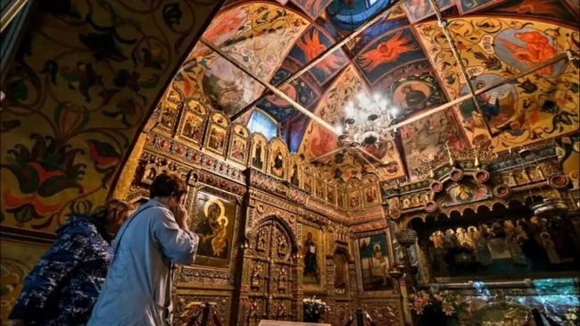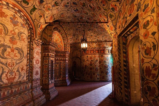 Его узкие галереи, низкие своды и старинные фрески создают атмосферу древней, почти сказочной Руси. Изначально белый, в XVII веке собор обрёл свои знаменитые цвета, вдохновлённые образом Небесного Иерусалима из Откровения Иоанна Богослова.