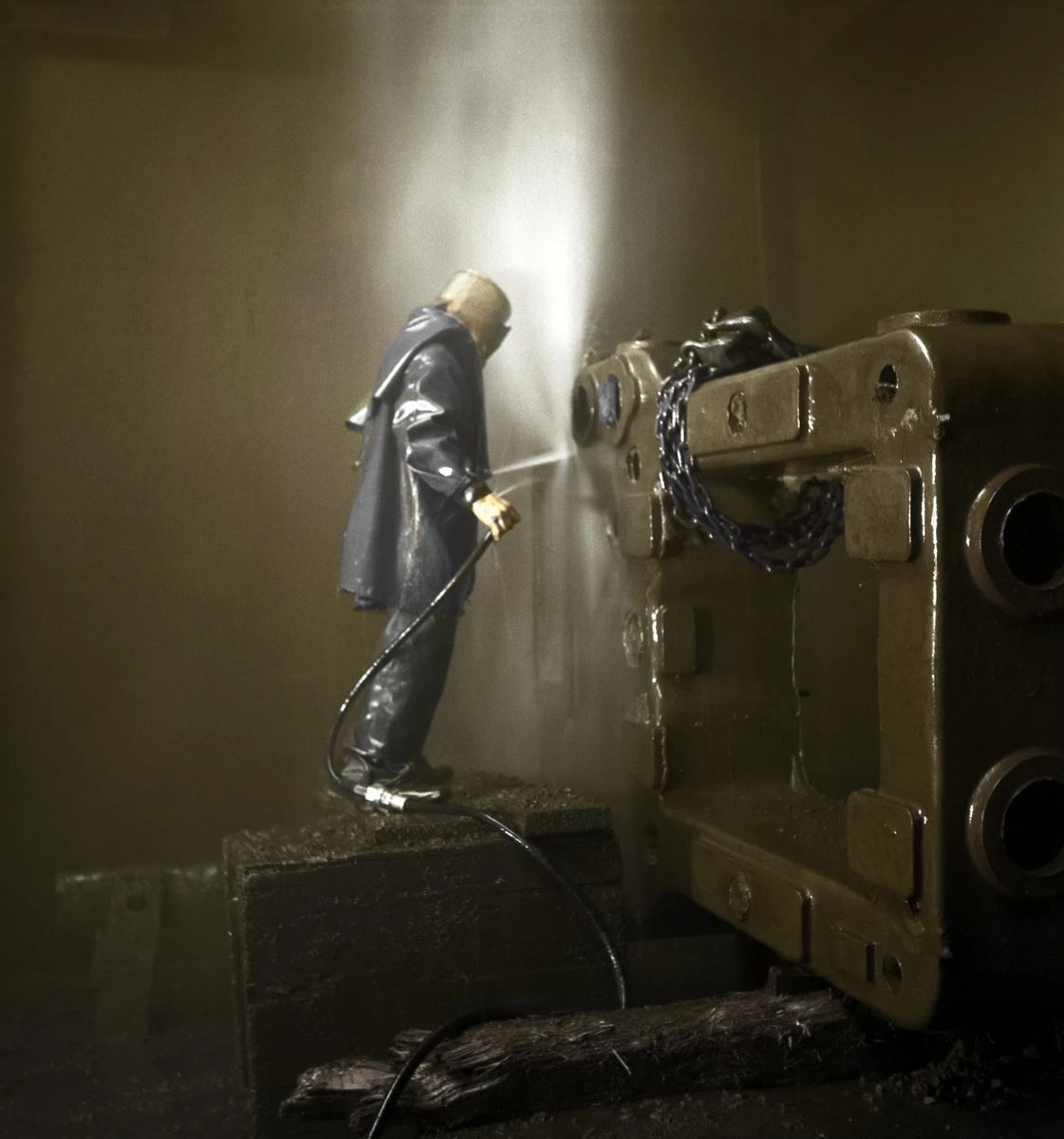 Рабочий на сталелитейном заводе в Винтертуре. Швейцария, 1943 год.