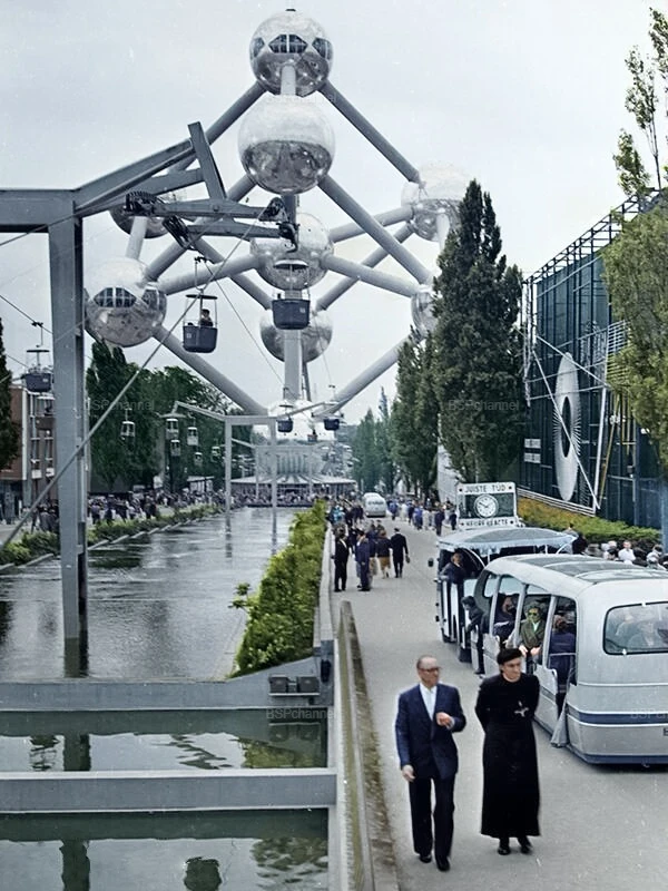 Атомиум, центральная аллея Всемирной выставки. Бельгия, г. Брюссель, 1958 год.