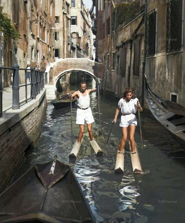 Катание на водных лыжах в Венеции, 1950-е годы.