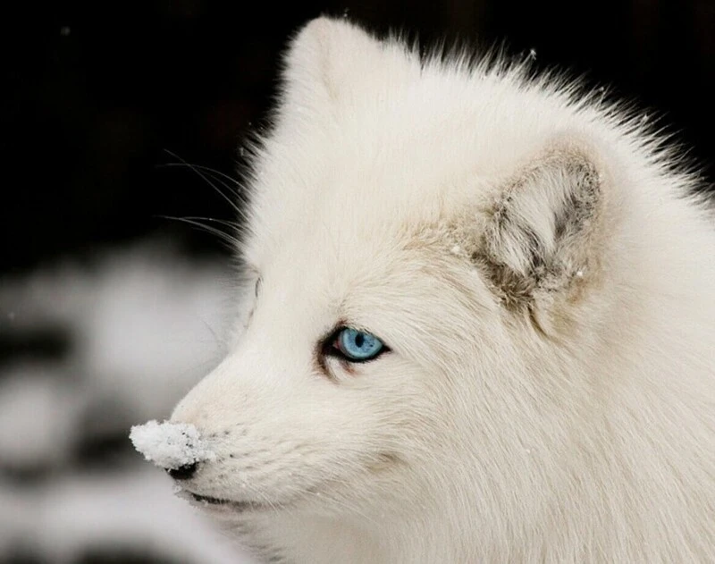 У песца возможны различные варианты цвета глаз, включая голубой, который возникает из-за генетической мутации или селекции. Обычно же их глаза глубокого золотого или оранжево-жёлтого оттенка.